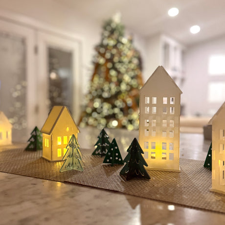 Just in time for the holidays, our acrylic Christmas Village ships flat and stores flat for easy storage year-to-year.